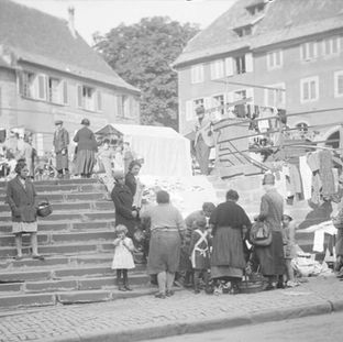 Sur le marché aux bestiaux se trouvait un troupeau varié, le marché aux cochons avait sa propre place. On apportait du gibier et de la volaille, des œufs et du beurre, des poissons et des écrevisses, des fruits et du raisin. Les boulangers et les bouchers veillaient au bien-être des visiteurs en leur proposant des saucisses fraîches et des "Markircher Wecken", et les chanteurs ambulants régalaient jeunes et vieux de leurs airs enjoués.
